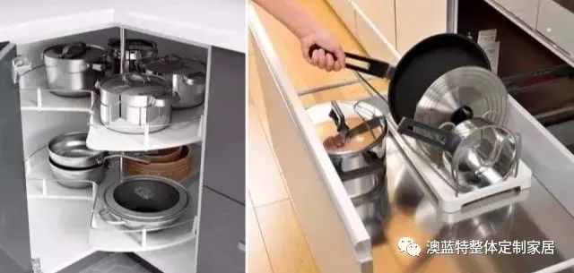 如(rú)果你(nǐ)對(duì)“哪裡(lǐ)使用(yòng),哪裡(lǐ)存放(fàng)”這(zhè)條收納法則還(hái)有(yǒu)印象的(de)♥話(huà),就(jiù)會(huì)發現(xiàn)更适合存放(fàng)鍋具的(de)位置其實是(shì)位于竈台下(xià)方的(de)底抽,以 豎著(zhe)的(de)形式進行(xíng)收納,炒菜時(shí)隻需要(yào)稍微(wēi)彎腰就(jiù)能(néng)夠到(dào)鍋具的(de)把手,比轉≠角櫃要(yào)順手得(de)多(duō)。