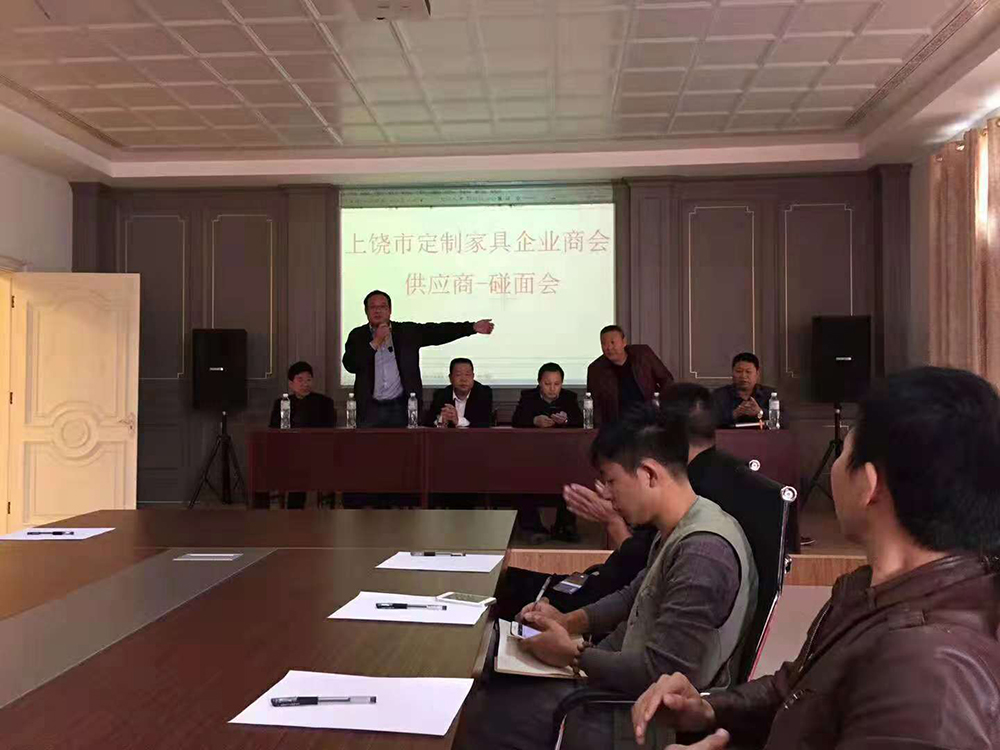 2018年(nián)11月(yuè)11日(rì)上(shàng)午9時(shí),上(shàng)饒市(shì)定制(zhì)家(jiā)具企業(yè)商會(huì)在彪王會(huì)議(yì)室,召開(kāi)了(le)供應商碰面會(huì)。ε此次碰面會(huì)的(de)與會(huì)人(rén)員(yuán),包括商會(huì)的(de)主要(yào)領導、各大(dà)供應商代表、廠(chǎng)商代表。會(huì)議(yì)的(de)目的(de)是(shì),為(wèi)供應商和(hé)廠(chǎng)商提供一(yī)個(gè☆)良好(hǎo)的(de)平台交流,方便彼此間(jiān)的(de)産品生(shēng)産、材料供應等方面的(de)對(duì)接,并對(duì)供應商和(hé)廠(♥chǎng)商提出一(yī)些(xiē)要(yào)求。