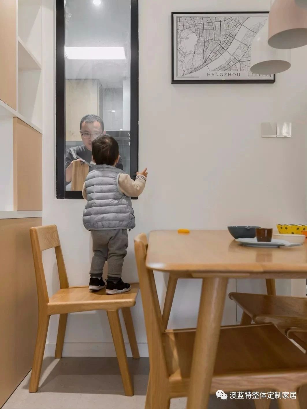 就(jiù)算(suàn)不(bù)做(zuò)開(kāi)窗(chuāng),用(yòng)一(yī)↕塊玻璃替代也(yě)可(kě)以增加空(kōng)間(jiān)互動,這(zhè)樣大(dà)人(rén)在廚房(fáng)做(zuò)飯,寶寶一(yī)個(gè)人(rén)在客廳玩(wán)↑耍也(yě)基本能(néng)照(zhào)顧到(dào)。