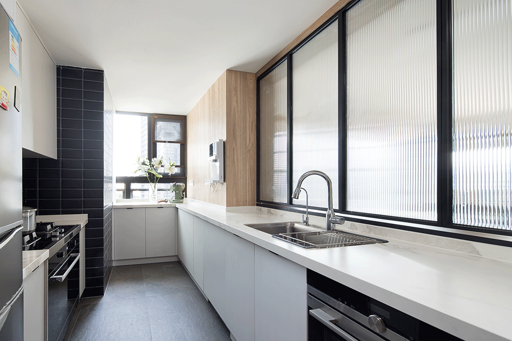比如(rú)上(shàng)圖這(zhè)個(gè)案例中,廚房(fáng)和(hé)小(xiǎo)餐廳相(xiàng)鄰,因為(wèi)層高(gāo)問(wèn)題采光(→guāng)不(bù)太好(hǎo),在廚房(fáng)開(kāi)個(gè)窗(chuāng),提升了(le)兩個(gè)空(kōng)間(✔jiān)的(de)采光(guāng)。